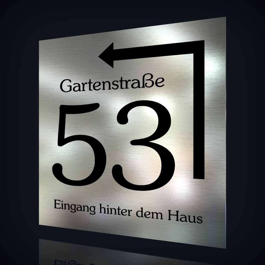 Edelstahl-Hausnummer Modell 34 – Eingang hinter dem Haus-2