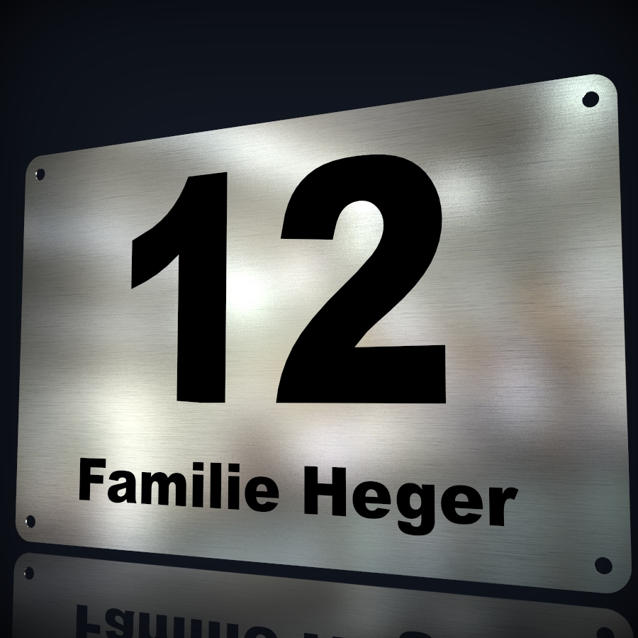 Text und Ziffern wie angegeben, Schriftart und Anordnung wie abgebildet (die Schriftgröße variiert je nach Anzahl der Zeichen)
