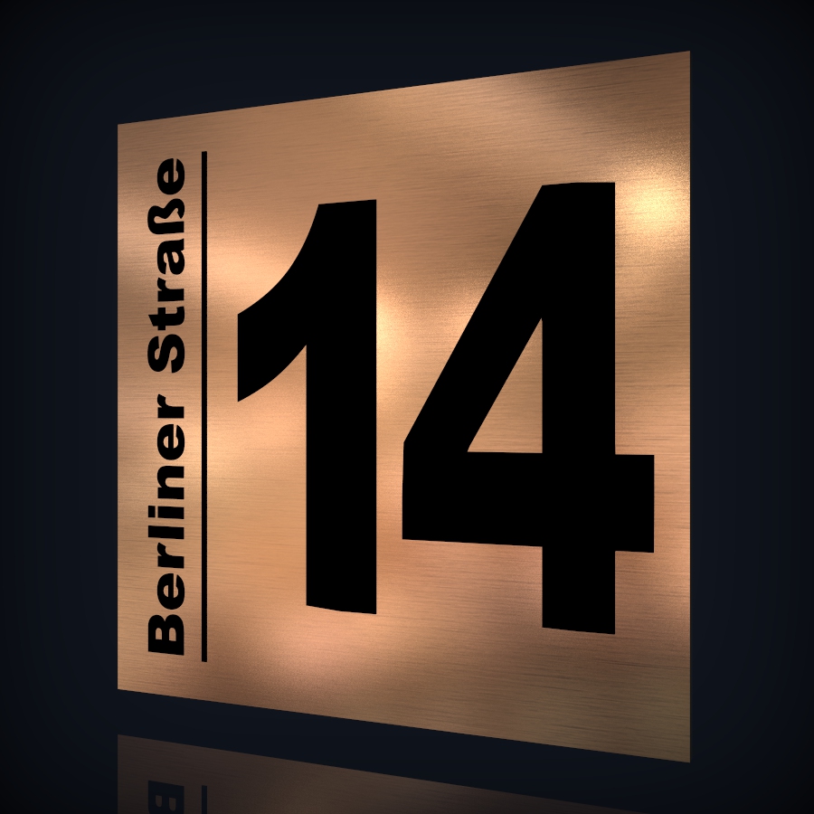 UV- und witterungsbeständiger Kunststoff mit einer Oberfläche in gebürsteter Metall-Optik (Edelstahl, Kupfer oder Gold)